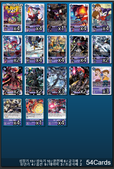 LV 3 디지몬의 경우, ST14 임프몬, EX2 임프몬, BT 12 임프몬 X 항체을 최대한으로 채워서 사용했습니다.