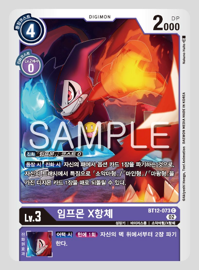 4 코스트로 등장하거나, 임프몬에서 0 코스트로 진화할 수 있다.