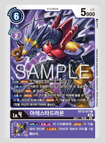 발동만 한다면 필드를 순식간에 제압할 수 있는 효과이지만, 퍼플 디지몬에서 6 코스트, 또는 블랙의 레벨 5 디지몬에서 9 코스트의 진화 코스트로 결코 가볍지 않으며,