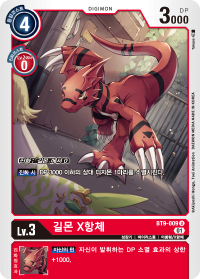 진화원 효과 :【어택 시】자신의 패를 1장 버리는 것으로 이 턴 동안 이 디지몬을 DP + 1000.