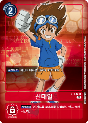 【자신의 턴】자신의 녹색이나 청색 디지몬이 배틀로 상대 디지몬만을 소멸시켰을 때, 이 테이머를 레스트시키는 것으로 메모리를 + 1 한다.