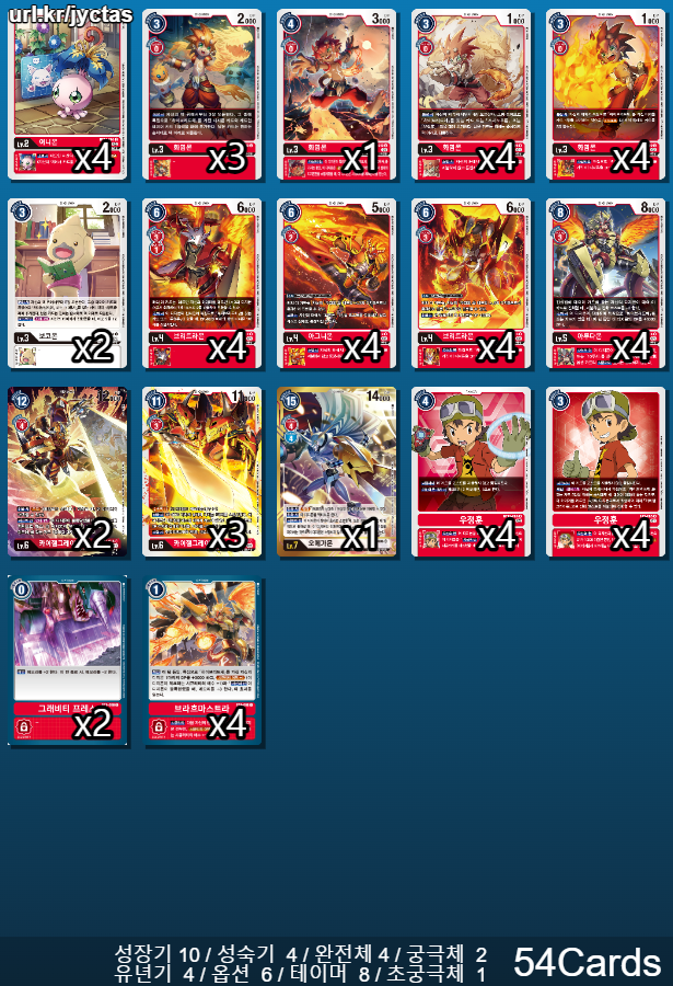 많은 진화를 반복하고 디지몬의 효과와 콤보를 통해 많은 카드를 순환할 수 있지만, 처음 이 덱을 시도하는 사람들에게는 그리 쉽게 다가오지 않을 수 있습니다.