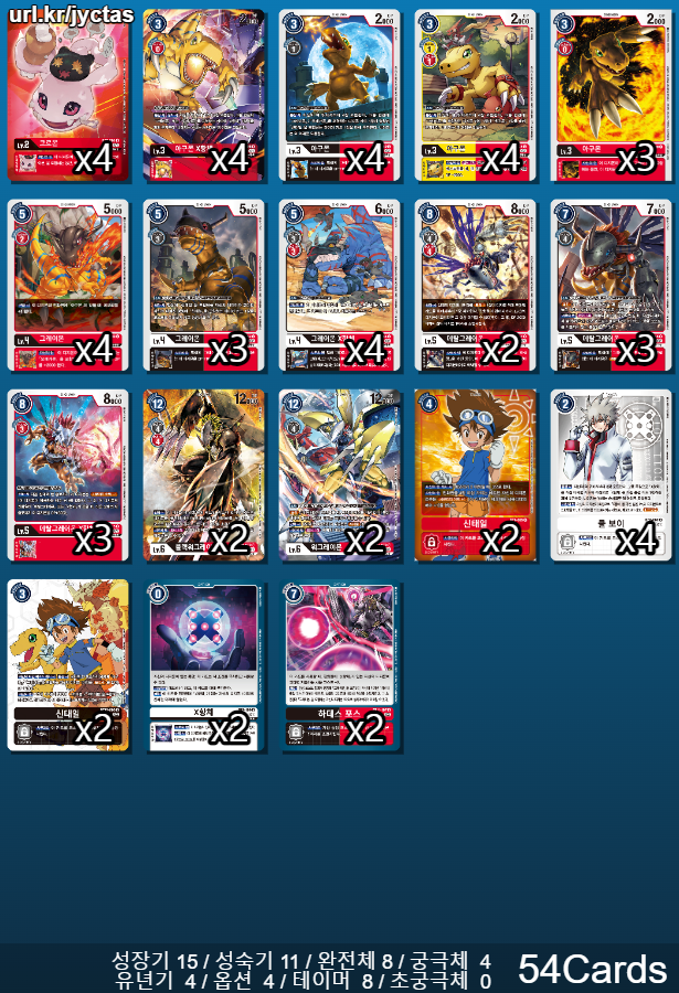 글로벌 덱 리스트에서 청그엑이라 불리는 BT 11 그레이몬X가 4장 포함된 덱의 정보와 분석은 상대적으로 정보를 찾기 어려웠다.