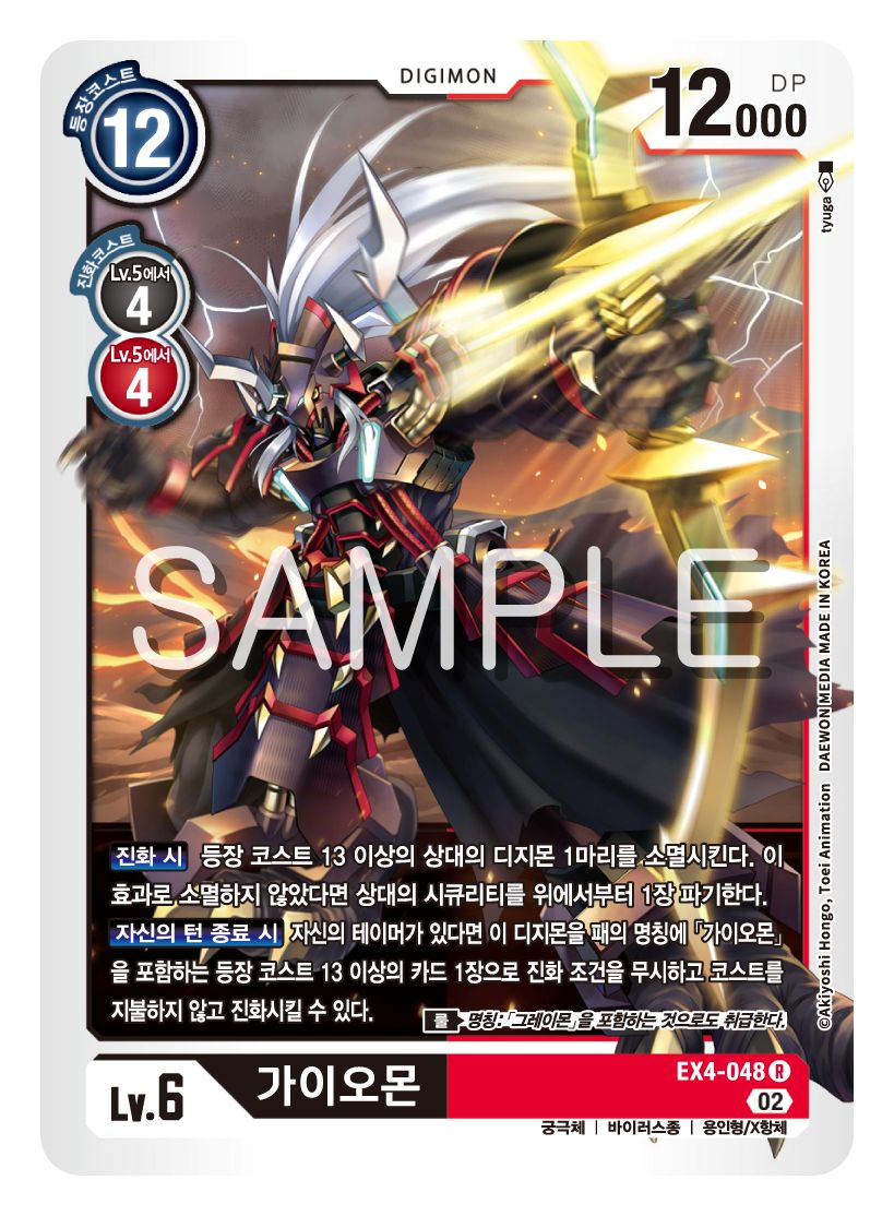아마도 진화 시 효과로 상대의 디지몬을 소멸시키거나, 상대의 시큐리티를 파기하고, 가이오몬의 진격으로 공격을 이어가라는 의도인 것 같지만, 뭔가 애매하다.