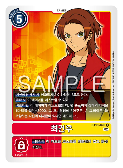 또한, 테이머가 레스트 되었을 때 상대의 시큐리티를 파기하게 되는데, 이 효과로 상대의 시큐리티가 1장 남았을 때 최건우가 파기와 함께 공격을 진행하면서 게임을 마무리할 수 있을 것이다.