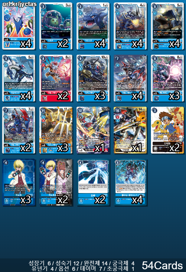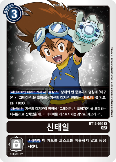메탈그레이몬 위로 0 코스트로 올라갈 수 있기 때문에 블루 플레어에서도 활약할 수 있는 카드다.