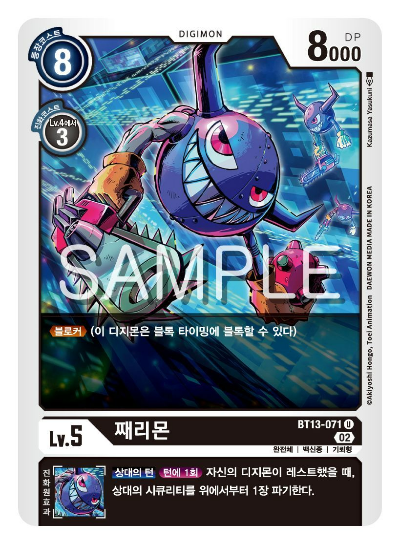이번 팩에서는 녹색 디지몬으로 발매되었으며, 등장 시 효과로 덱 위의 3장을 오픈하여 수 / 짐승 형 디지몬과 로얄 나이츠를 서치해올 수 있다.
