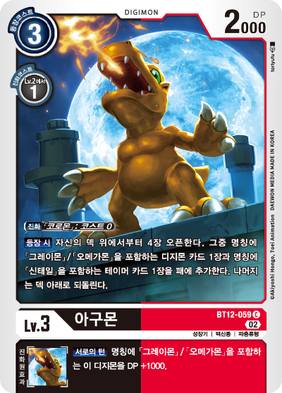 이 카드의 아구몬들의 목적은 동일하다. 최대한 많은 그레이몬을 찾아오는 것이 그것이다
