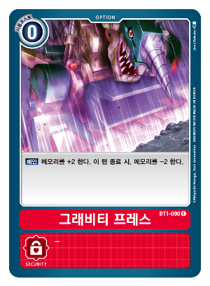 또한, 옵션의 시큐리티 효과로 소멸 시, 그레이몬 X항체의 효과로 진화원을 2장씩 파기하게 되는데 이 때 타수가 모자라 게임을 끝내지 못하는 경우가 생긴다.
