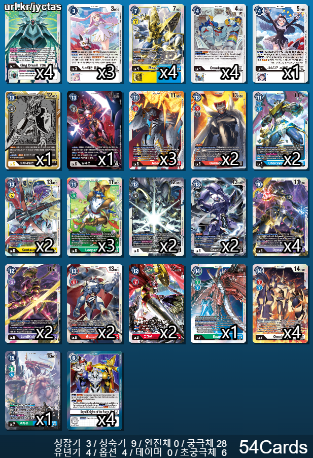 제가 대회에서 사용한 덱은 주로 로얄 나이츠 디지몬 카드에 집중한 로얄 나이츠 덱입니다.