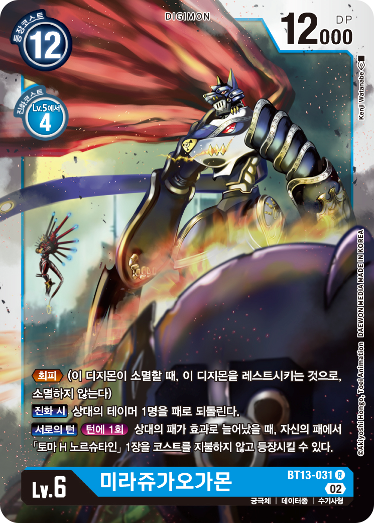 많은 플레이어가 BT 13 미라쥬가오가몬을 덱에 여러 장 넣는 경우는 많지 않습니다.
