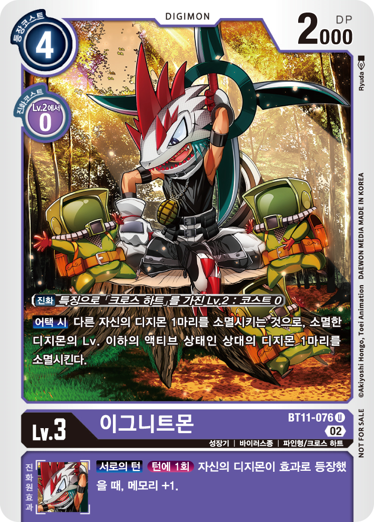 효과로 디지몬이 등장했을 때 1메모리를 받는 것을 수행하며, 중간 진화탑 역할을 맡을 것이다.