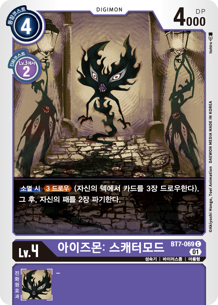 이때, 스캐터 모드나 기즈몬의 소멸 시 효과와 연계하여 1 코스트로 많은 이점을 취할 수 있는 카드다