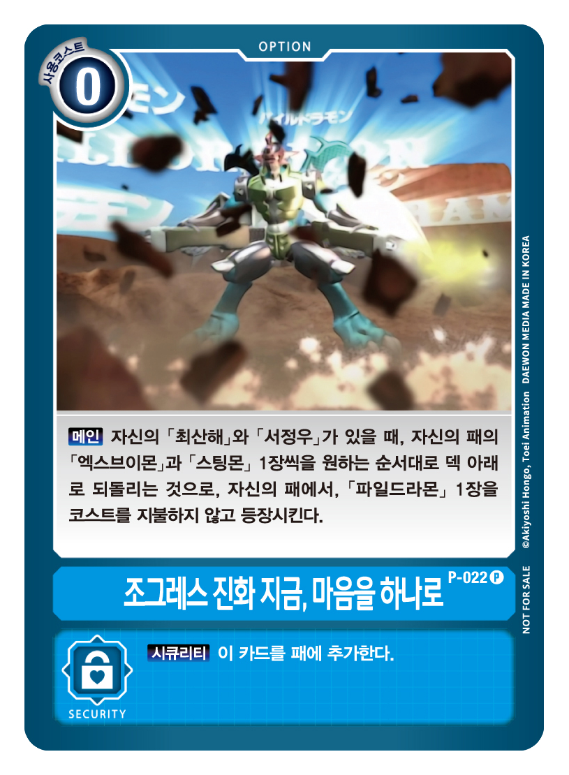 - 이 턴 동안 자신의 디지몬 1체의 DP를 + 1000 한다.