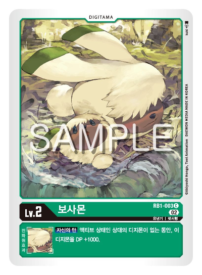 앙고라몬 라인의 디지타마 보사몬은 액티브 상태인 상대 디지몬이 없는 동안 DP를 1000 올려준다.