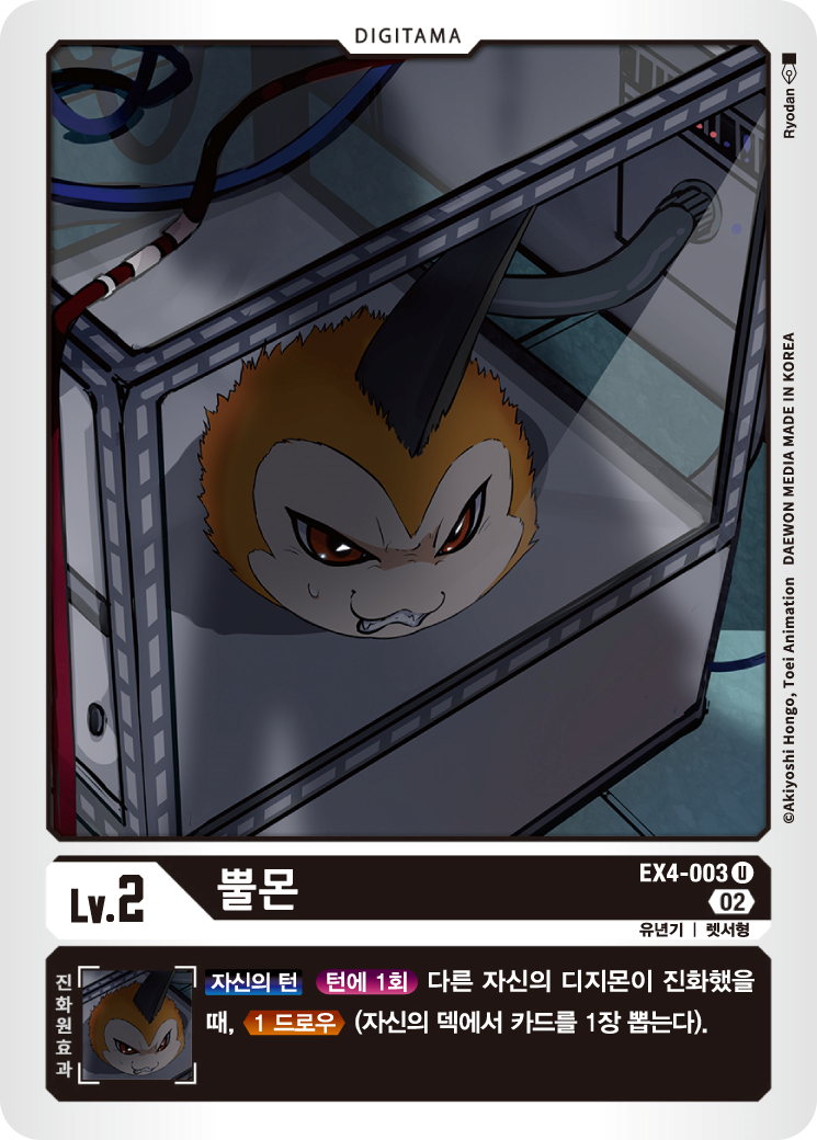 직접 진화하는 것이 아닌, 다른 디지몬이 진화할때 드로우를 보조하는 뿔몬을 메인으로 삼았다