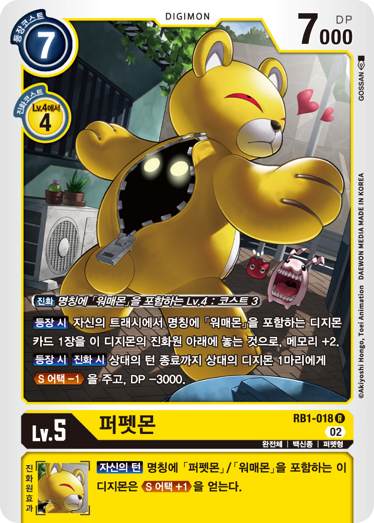 진화원 효과로 퍼펫몬에게 시큐리티 어택+1을 부여하기 때문에, 신퍼펫몬의 메인 발사대로 사용하게 될 것이다