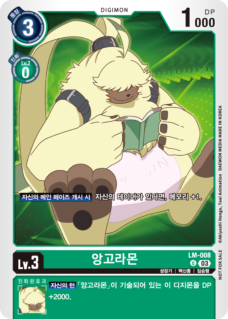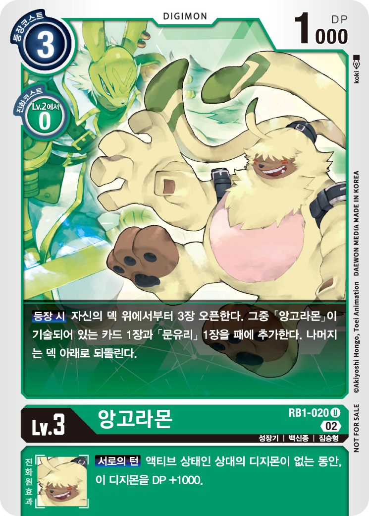 또한, 진화원 효과도 DP를 보조해 주기 때문에 앙고라몬 덱에서는 크게 부족할 게 없는 카드이다.