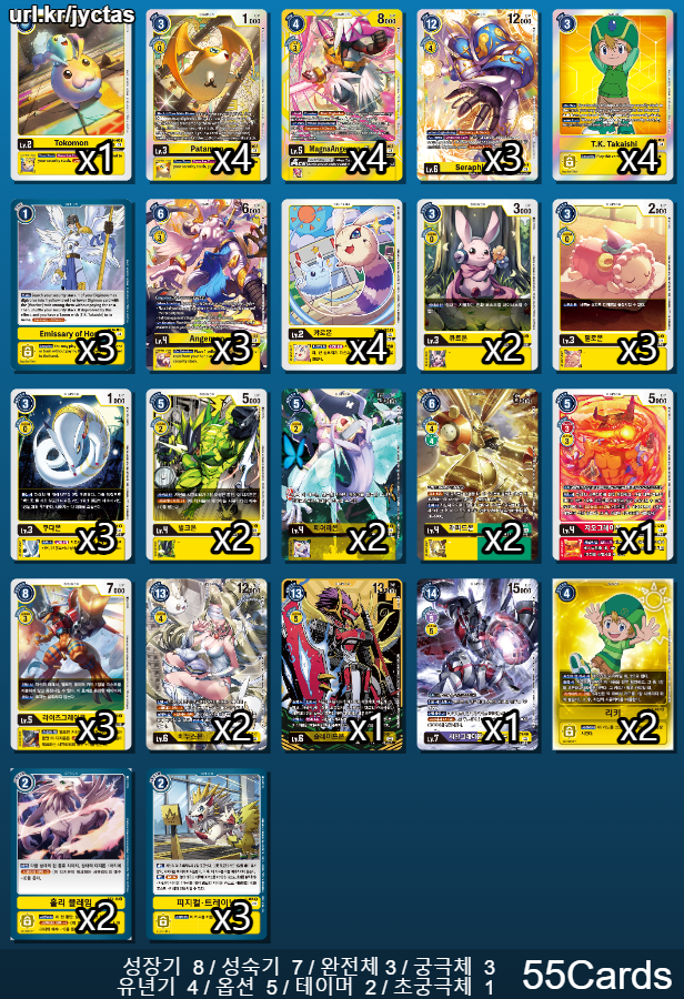 개인적으로는 황백신 덱 그 자체도 매력적이지만, 황색 카드군에 파닥몬을 기반으로 한 엔진이 추가된 느낌을 받았다.