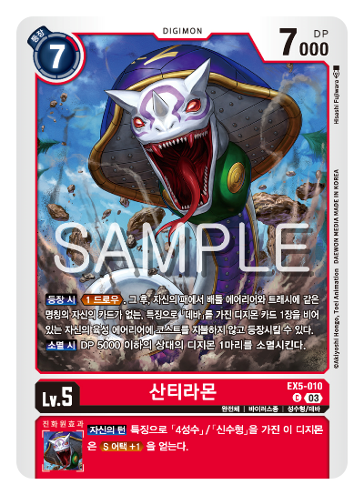 EX5 카드 살펴보기 첫 번째 테마는 데바, 사성수, 황룡몬이다