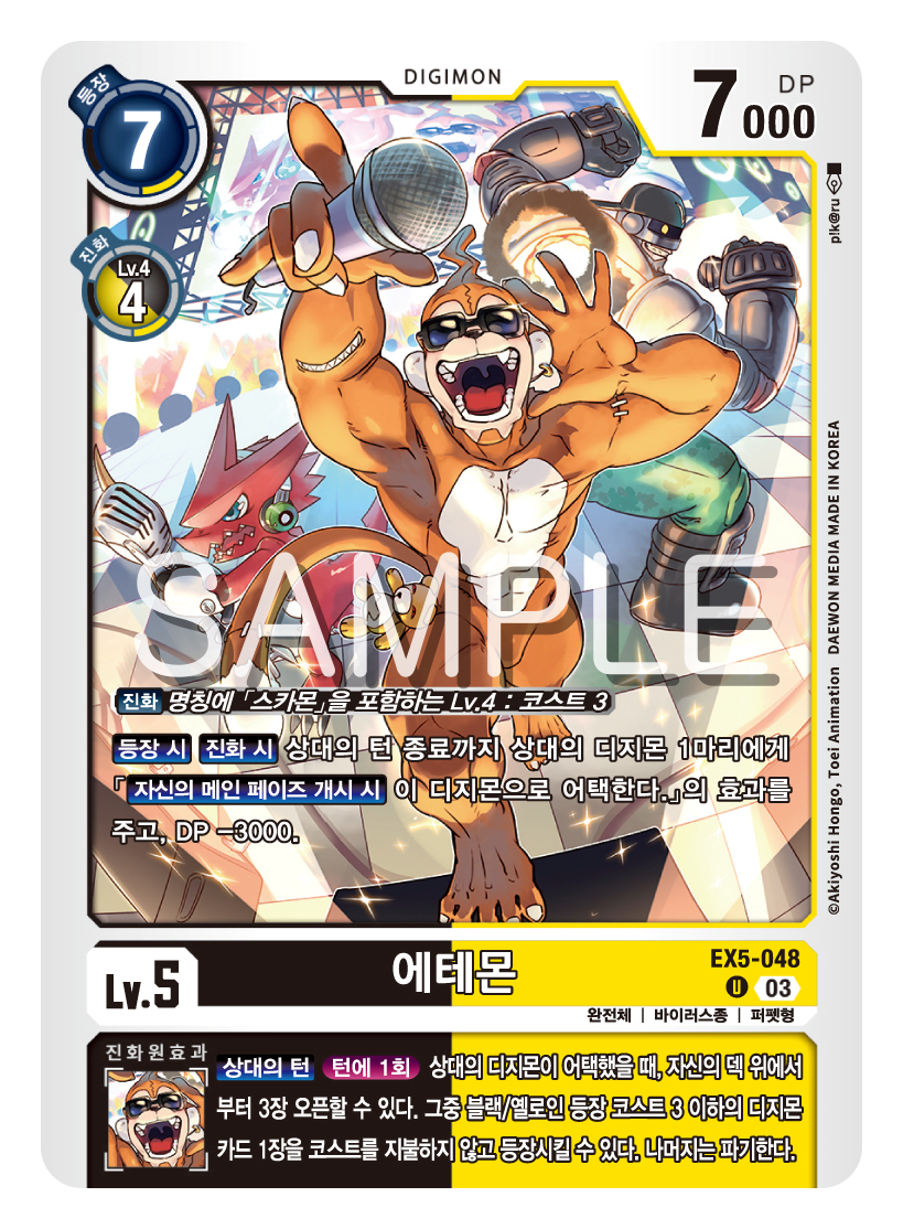 그러나 EX-5에서는 이 상황이 바뀔 것으로 예상되며, 이는 새로운 LV6 메탈에테몬이 강력한 컨트롤 효과를 보유하고 있기 때문입니다.