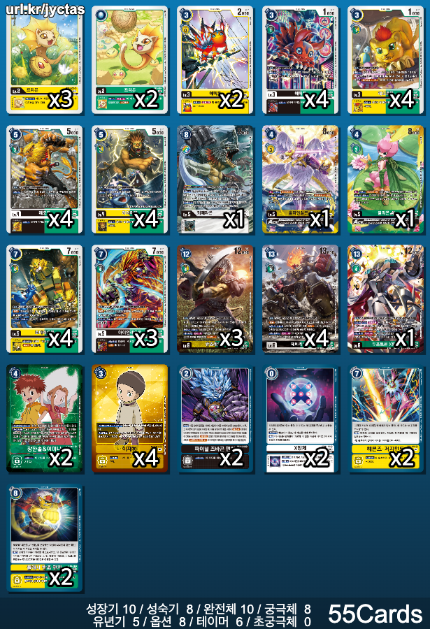 정말 좋은 카드이며, 헤비레오몬 4장을 제외한 반쵸레오몬과 두프트몬 X항체 매수는 취향에 따라 채용하면 좋을 것이다
