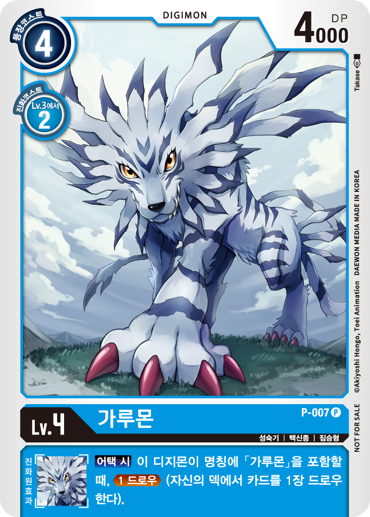 진화원 효과 : 【어택시】 이 디지몬이 명칭에 「가루루몬」을 포함할 때, 【1 드로】(자신의 덱에서 카드를 1장 뽑는다).