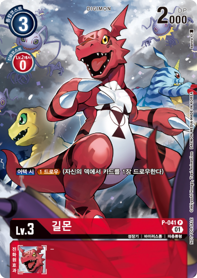 진화원 효과 : 【자신의 턴】【턴에 1회 자신의 디지몬의 효과로 자신의 패가 늘어났을 때, 상대의 턴 종료 시까지 이 디지몬을 DP + 1000.