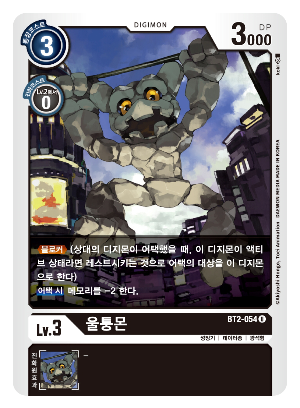 【블로커】(상대의 디지몬이 어택했을 때, 이 디지몬이 액티브상태라면 레스트시키는 것으로 어택의 대상을 이 디지몬으로 한다)