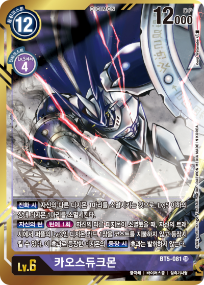등장 코스트 15 / 진화 코스트 적색 LV.6에서 4 또는 청색 LV.6에서 4
