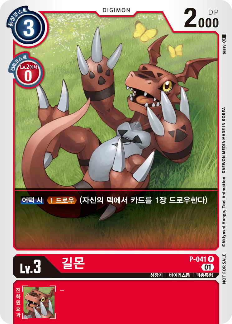 디지타마부터 설명하자면, 저는 EX 2 기기몬을 4장 사용하여 프로모 길몬과의 콤보로 1회 공격 시 2장을 드로우할 수 있습니다.