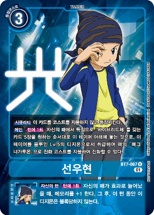 진화원 효과 :【상대의 턴】자신의 시큐리티 디지몬 전체의 DP를 + 3000 한다.