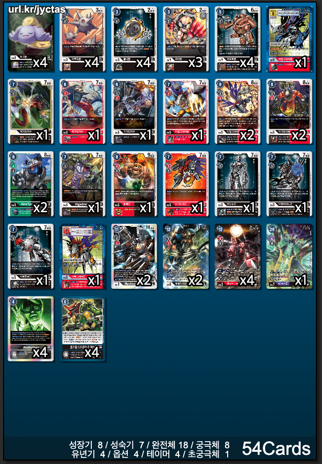 이러한 이유로, 다른 레벨 5 디지몬들은 1장만 넣었지만, 이 디지몬들은 덱에 2장씩 할당되었습니다.