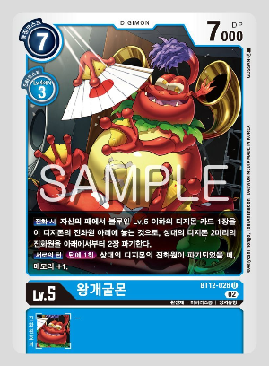 레벨 5 이하의 디지몬을 아래에 배치하고, 상대의 진화원을 2장 파기할 수 있다.