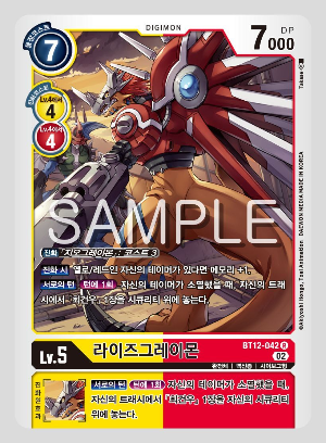 라이즈 그레이몬은 레드 또는 옐로에서 4 코스트로 진화하거나, 지오 그레이몬에서 3 코스트로 진화한다.