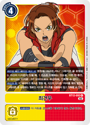 또한 필드의 '모든' 최건우에게 DP 3000과 시큐리티 어택+1을 부여하여, 추가로 공격권을 부여할 수 있다.